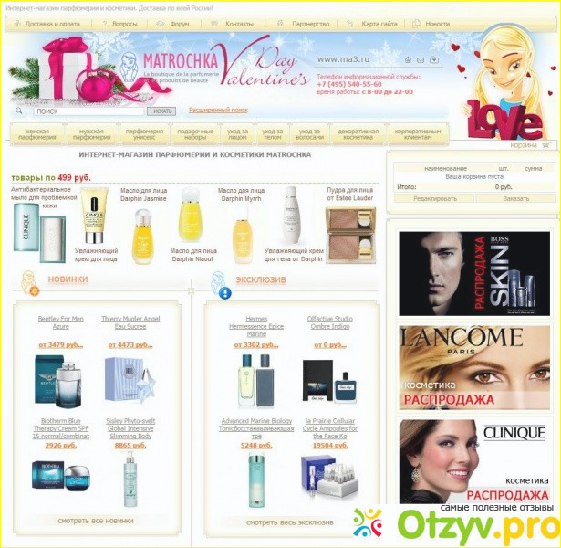 Интернет-магазин матрешка действительно хороший магазин. Большой выбор не только парфюмерии, но и различной косметики. В этом магазине я еще обязательно буду делать заказ, так как я осталась всем довольна. Он не подводил ни разу меня. Работают хорошо, оперативно. Да и доставка вообще в другой регион очень быстрая по сравнению с другими онлайн магазинами.