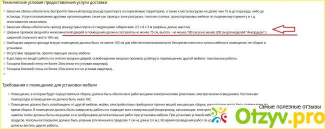 Когда заказали и ждали доставку (3 дня), поняли, что плохо прочитали её правила. Согласно условиям, для заноса полногабаритного дивана в квартиру дверные проемы должны быть не менее определенного размера.