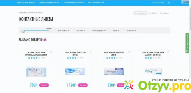 4. Ассортимент. Всегда есть возможность выбрать необходимые линзы с кривизной и диоптрией. Даже в том случае, если определенный линз нет в наличии, то ожидание товара не займет много времени, максимум я ждала одну неделю. Кстати, сотрудники интернет-магазина всегда предупреждают о том, сколько придется ждать, это очень приятно и удобно.