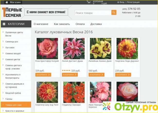 Чем удобен сайт, а все конечно своими красивым картинками и предложениями разных сортов, которые можно заказать и купить у них в любое время, круглогодично, а заказать можно после выбранных семян через систему почты, если Вы проживаете не в самом городе Москва, где они и находятся.