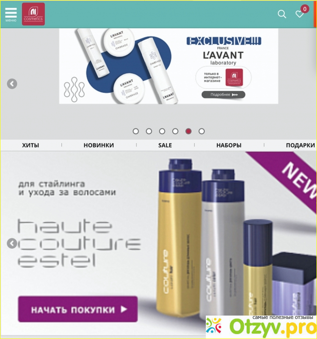 Зайдя на сайт, первое на что обращаешь внимание - оформление. Современное, актуальной, лаконичное. На первый план выходят новинки и хиты продаж, а так же интересные предложения и акции.