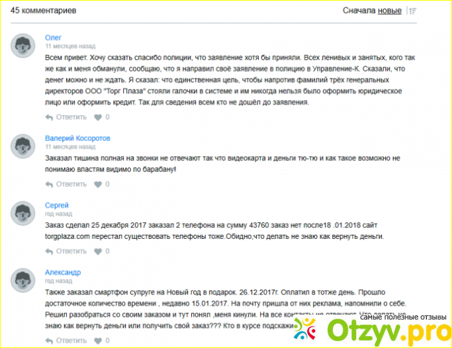 В этой части, никакой неожиданности также не произошло, только если в случае с придуманными отзывами несуществующих пользователей, они исключительно положительные, то здесь всё полностью до наоборот. Но это и естественно, ведь никто из доверчивых покупателей, в какой бы из стран СНГ они не проживали, так и не дождался качественных и недорогих гаджетов, да и ущерб, за столь «удачную и выгодную покупку» им никто так и не возместил. Но эти отзывы, пожалуй, читать будет даже не интересно из-за отсутствия интриги – итог ясен наперёд.