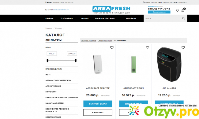 Добрый день господа. Меня зовут Николай, я хочу поделиться с Вами своим приобретением в интернет магазине климатической технике areafresh.ru.