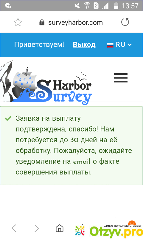После заявки на вывод вознаграждения приходит вот такое оповещение.