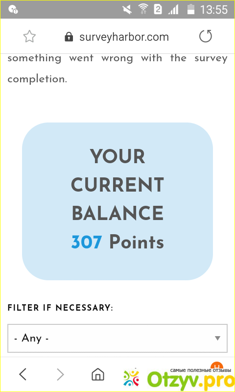 Интернет-опросник, где можно подрабатывать с помощью вашего мнения примечателен необычной системой начисления за исследования. Вознаграждение идет в поинтах, где 100 POINTS = 170 RUB.