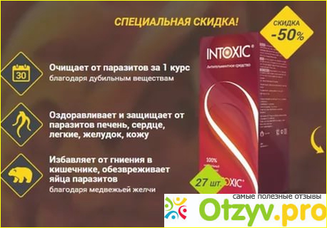 Многие люди твердят о том, что эффективность данного средства равна нулю, при этом описывают его крайне негативно. Но это глубокое заблуждение, если более детально взглянуть на состав этого средства, то можно понять, что оно не только способно предотвращать появление паразитов, но также за короткие сроки полностью их устранять. Еще один факт написать негативный отзыв, не испробовав данное средство, это то что его не продают в аптеках. Это только плюс, и плюс для Вас, поскольку в интернет-магазине это средство стоит намного меньше, чем если бы была возможность приобрести в аптеке. Средняя стоимость данного препарата составляет около 1000 рублей, а это совершенно немного за месячный курс его лечения. Далее читайте подробнее, что же такое intoxic и каким образом его нужно использовать.