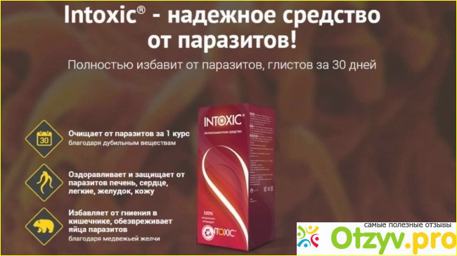 Новейшим и очень эффективным средством, которое позволит вам бороться с любым видом паразитов, является Intoxic. По своему составу препарат является щадящим, так как он натуральный. И уже через месяц результат будет позитивный: