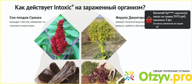 Когда понадобилось пропить что-нибудь от глистов, я наткнулся на этот препарат под названием Intoxic, начал собирать о нём информацию. Отзывы очень противоречивые. Но меня насторожило что на их официальном сайте предлагают срочно купить препарат по специальной цене и осталось типа там только 9 упаковок, спустя буквально час захожу и пишет , что осталось всего 13 упаковок! Тоесть это обычная рекламная замануха как во многих магазинах и салонах , типа - покупай быстрее , а то ни чего не достанется или будет намного дороже! Но зайдя на сайт и через неделю увидел , что там ничего не меняется кроме постоянно изменяющейся цифры сколько осталось упаковок.