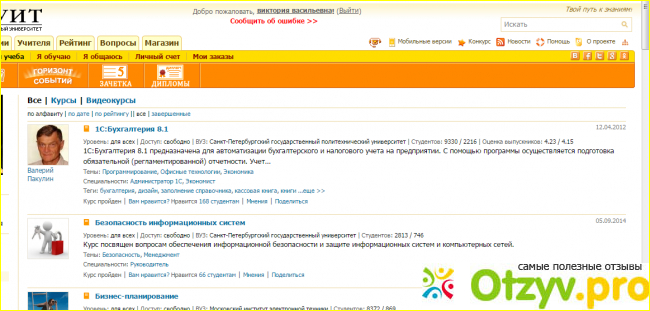 Из всех пройденных курсов мне лично понравились все безопасности сетей и история науки и техники, цифровая фотография.