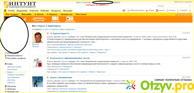 Как видите, я прошла курсы 1С Бухгалтерии, Безопасности информационных систем, Бизнес-планирование никак не допинаю). Слева в колонке настройки профиля, расписание, курсы и прочее. Стоит уделить немного времени и разобраться - потом все будет много проще.