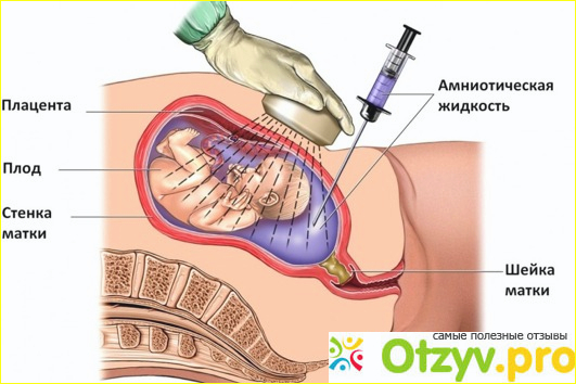 После завершения предоперационного ультразвукового исследования выбирается место вставки иглы. Предпочтительнее вставлять иглу в среднюю площадь основания матки, но это не всегда место, на котором расположен оптимальный карман амниотической жидкости. Нередко требуется нижний сегмент матки или боковой подход. Если возможно, следует избегаем плаценты; однако трансплацентарный амниоцентез, не снижает безопасность амниоцентеза. Если выталкивание оптимального кармана жидкости требует прохождения плаценты, тогда выбирается тончайшая часть плаценты, через которую можно направлять иглу. Необходимо установить и исключить место вставки пуповины. Также следует расположить материнскую кишку и мочевой пузырь, так как их также следует избегать. Может использоваться местный подкожный анестетик. После очистки материнской кожи раствором йода стерильные поршни размещаются вокруг места введения иглы, чтобы поддерживать асептическое поле.