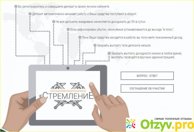 Стремление - это частный инвестиционный фонд, новейший проект, который имеет реальную базу, так как основан на физической деятельности своих организаторов: