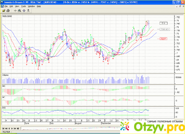 Основные компоненты программы заточены именно на это. Это прежде всего Аллигатор, фракталы, удивительный осциллятор, который лучше всего прогнозирует волны Эллиота, индикатор рыночного ускорения, линия баланса, основные торговые зоны. Программа настроена так, что с ней разберется даже новичок. Что самое интересное, даются непосредственные рекомендации к любой торговой ситуации. Суть состоит в том, что неважно куда идет рынок, вниз или вверх , трейдер в любом случае будет на стороне тренда.