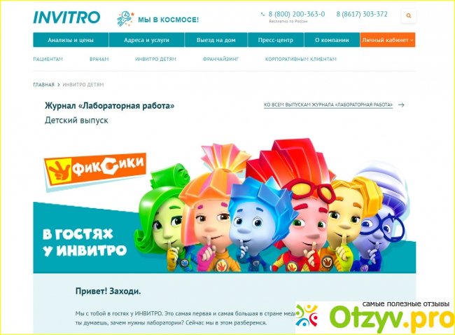 "Инвитро детям" - детский раздел. Здесь можно ознакомиться с детским выпуском журнала "Лабораторная работа". Весьма полезный раздел, когда вам необходимо объяснить ребенку что такое анализы и как их сдавать.