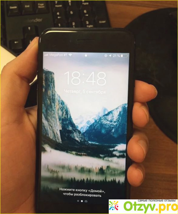 Когда берешь в руки, то создаётся знакомое ощущение, как у всех айфонов — монолитный, тяжелый кирпичик, который приятно держать в руках. Сзади располагается крупная камера, вспышка и логотип компании. Снизу отверстия для питания, оно же и для наушников, стерео-динамики и микрофон. На передней панели вместо физической кнопки Home, сенсорная, с небольшой вибро-отдачей. Может кто разницу с физической кнопкой и почувствует, я не очень, возможно из-за того, что не так часто пользуюсь Айфоном. Кстати, эта модель получила защиту от влаги и пыли по стандарту IP67. Теперь не страшно уронить в лужу или пролить на него кофе).