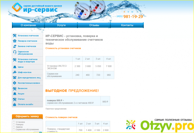 Так как счетчики на воду становятся необходимостью и перестанавливать их тоже заставляют раз в несколько лет, появилось и много фирм, производящих данный необходимый прибор для дома, а также много компаний, которые предлагают вам свои услуги по установке, а также перестановке счетчика на холодную и горячую воду. Одной из таких компаний является Ир-сервис и сегодня мы поговорим об их официальном сайте, который у подобной компании, естественно, тоже имеется.