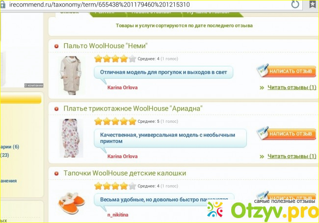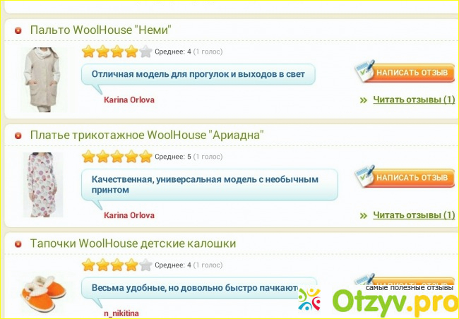 Посмотрим же, о каких же товарах Woolhouse пишут здесь, на irecommend.ru, люди.