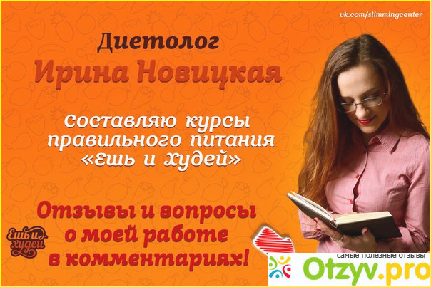 Ирина Новицкая написала что такие диеты отправляет только после оплаты. Подруга произвела оплату и на этом переписка закончилась, написала диетолог чтобы ждать когда составит перешлёт на почту электронную. Подруга до сих пор ждёт прошло три месяца, поняла толку не будет. Встал другой вопрос как обратно вернуть деньги. Написала письмо но ответ так и не последовал, доверчивости подруги я не удивлена она постоянно на этом обжигается, жизнь её всё никак не научит. Мой всем совет такой, давно многим известно что в интернете много мошенников, лучше посетите диетолога у себя в городе. Во первых врача вы видите в лицо и можете попросить на крайний случай её сертификат что она является таковым специалистом. Во вторых у вас будет выбор в цене приёма таких врачей и по оказанию их услуг, а за кота в мешке могут быть непредвиденные последствия. Подруга очень расстроилась так как возлагала на Новицкую большие надежды. В итоге пошла на фитнес и от расстройства что с ней так обошлись потеряла аппетит и потихоньку стала прилично худеть. Сначала ей удалось сбросить четыре килограмма, а когда втянулась в фитнес сбрасывала ещё больше.