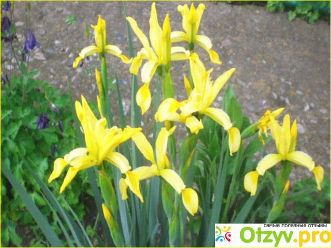 Болотный ирис неприхотлив и может произрастать на любых почвах, поэтому его можно использовать в любом декорировании сада.