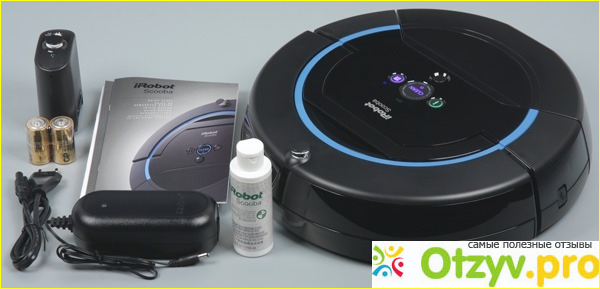 Я уже настолько к этому привыкла, что решила подыскать новый робот-пылесос и для этого зашла в интернет, где и начала поиски. Обратила я внимание на моющий робот-пылесос iRobot Scooba 450, который меня очень впечатлил дизайном, симпатичный, аккуратненький, в чёрном цвете, с небольшой вставкой голубого цвета. Когда же я начала читать отзывы, то там они были разнообразными, однозначных не было, но я несмотря на это, всё равно заказала робот-пылесос. Доставили мне его достаточно быстро, и я буквально на второй день приступила к уборке. Сначала я его полностью зарядила и этот процесс продолжался на протяжении одного часа, затем приступила к уборке, время на одну комнату уходило около 20 минут. В комплект к этому пылесосу шла специальная фирменная жидкость, в количестве 200 мл, и когда началась уборка, то я ощутила довольно таки приятный запах по всей комнате, который шел от той же жидкости. Когда я хотела её приобрести, то оказалось что стоит она не дёшиво, пришлось в дальнейшем покупать специальные растворы для мытья ламината. Работает пылесос так: для начала он пылесосит территорию, а уже потом разбрызгивает жидкость и вбирает в себя, это очень хорошая альтернатива старым бабушкиным методам, а именно швабрам и полусогнутым положением. Во время уборки можно заниматься своими делами, всё остальное за вас сделает пылесос. В комплект входит сам робот-пылесос, инструкция по эксплуатации, гарантийный талон, зарядное устройство и аккумулятор.
