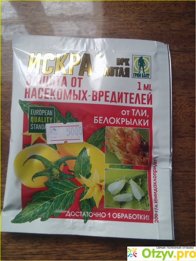 Это небольшая ампула в целлофановом пакетике весом 1 гр. Ее достаточно растворить в 5 литрах воды. Затем этим раствором нужно с помощью распылителя побрызгать картофельную ботву. Жуки уже где - то через час -два начинают отмирать и опадают с ботвы. И долгое время больше не появляются. Мы это средство использовали за сезон один раз - перед началом цветения картофеля. Этого было достаточно.