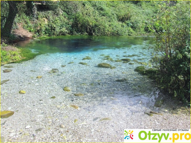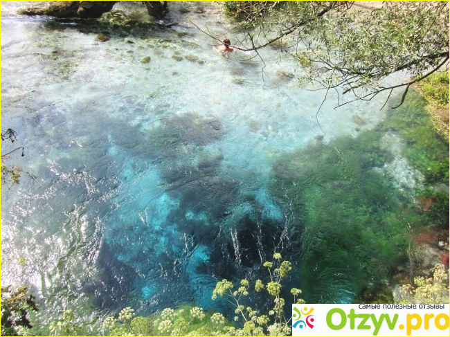 Туристы иногда проводят эксперимент - бросают монетку или камешек в центр источника и через некоторое время вода выталкивает их на поверхность водоема. Источник дает начало реке Быстрица, которая, в свою очередь обеспечивает половину Албании электроэнергией (одна ГЭС еще советской постройки, вторая ГЭС уже современная). Интересно, что вода в источнике имеет почти всегда одинаковую температуру - около 13 градусов. Некоторые смелые туристы даже купались (понятно, что это действо сопровождалось писками и охами), я же рискнула только ноги пополоскать.