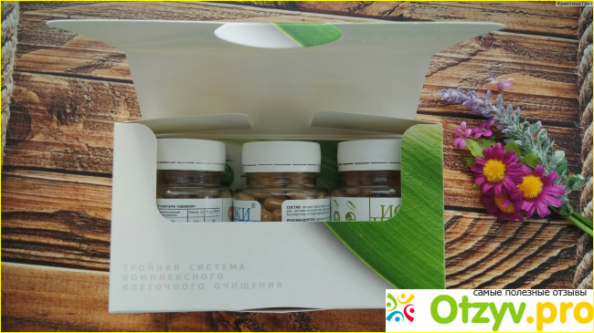 Данная добавка состоит из трех компонентов, скорее даже комплексов (три отдельные упаковки с капсулами), которые рассчитаны на три курса и представляют из себя полноценную формулу очищения организма. Из чего же они состоят: если принимать первый комплекс капсул, то можно наблюдать очищение межклеточного пространства. Второй комплекс призван очищать внутриклеточное пространство, третья – защита клеток от вредных воздействий внутренней и внешней среды.
