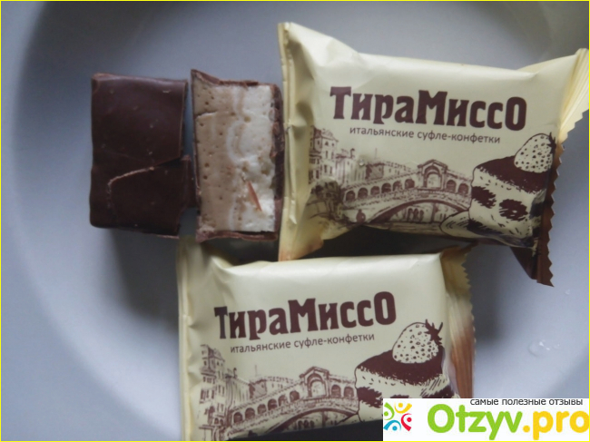 Вроде по цвету на разрезе что-то напоминает кофе, то ли какао, но во вкусе не уловила этих составляющих, если уже сильно прислушиваться, то можно что-то и разобрать похожее на кофе и на какао, но я не гурман. Только могу сказать, что вкус приятный, нежный. Обязательно стоит попробовать, тем кто любит суфле. Суфле на мой взгляд всем любителям подобных конфет должно понравится.