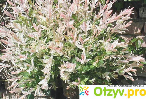 На картинке (фотографии)растение находится в той фазе, когда листья приобретают белый и нежно-розовый цвет. Смотрится достаточно необычно, как будто какое-то растение покрыло снегом или инеем, издалека вообще кажется, что это белоснежные сугробы снега или какое-то великолепное заграничное растение (хотя что скромничать, так и есть).