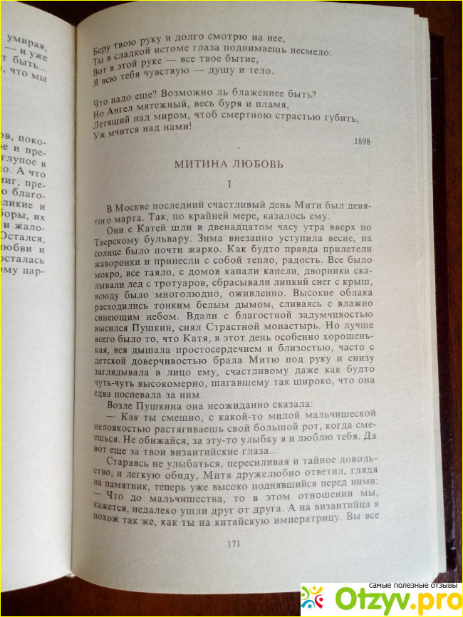 В очередной раз перечитала повесть Ивана Алексеевича Бунина "Митина Любовь" и опять получила огромное удовольствие от стиля писателя, от интеллигентного и сдержанного слога великого мастера.