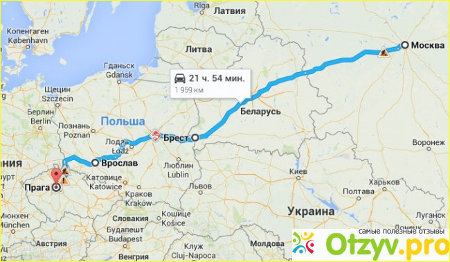 Если ехать из Москвы через Польшу и Белоруссию, то время потраченное на путешествие будет составлять около 23 часов , за которые предстоит преодолеть расстояние около 2000 км. В это время включено пересечение белорусско-польской границы, а также исключены остановки на ночлег. Цена бензина потраченного на переезд будет примерно сто семидесяти евро. Также следует отметить что за путешествие по скоростным дорогам Европы в частности Польши предусмотрена оплата, в среднем придётся заплатить за это пятнадцать евро. Также, когда вы едете в Чехию, то Вам нужно будет приобрести виньетку, чтобы оплачивать местные автомагистрали, и закрепить ее на лобовом стекле в соответствии с инструкцией.