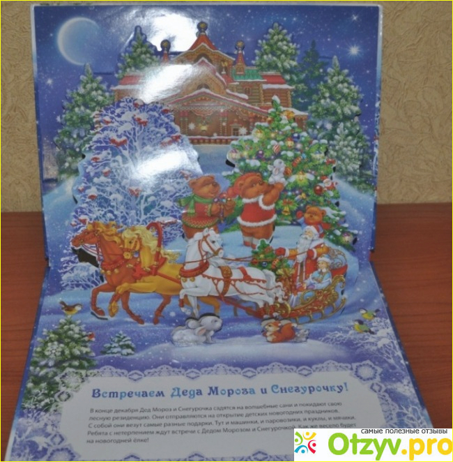 Издательство "Эксмо". Три панорамные конструкции. Сказка "Морозко", стихотворения , история про денла Мороза и его внучку Снегуроску. Очень интересно. Сама зачиталась. :) Если Новый Год ваш любимый праздник, книжка вернёт вам ощущение детства. Картинки иллюстрации просто изумительные. Нарисованно шикарно. Яркие краски. Мой племянник носился с книгой целый день. Всё показывал. Просил почитать. Играл . Так, что хотите увлеч ребёнка- дайте эту книжку и ребёнка будет не видно и не слышно. Потому что панарамные картинки его очень завлекут. Помню ещё из своего детства. Меня увлекали такие книжки.