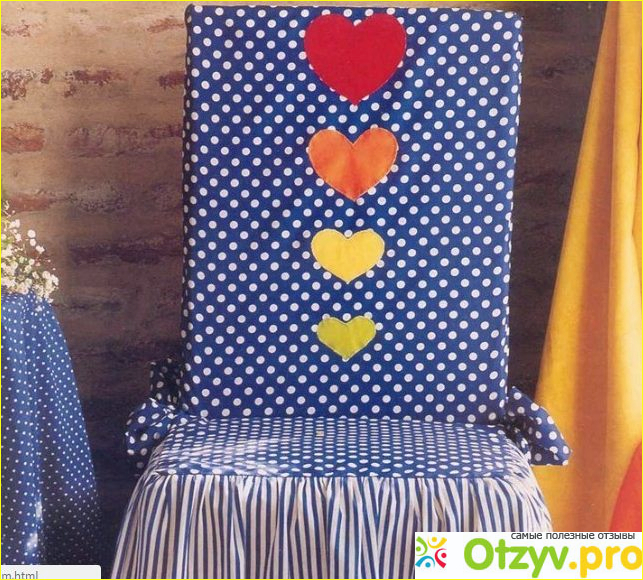Фиксироваться на стуле такая накидка будет с помощью четырех завязок, которые можно сделать из ленты, тесьмы или из этой же ткани. Сначала их нужно пришить к основной детали наметочным швом, а затем пристрочить на швейной машинке или пришить вручную, когда уже будет производиться сшивание всех деталей.