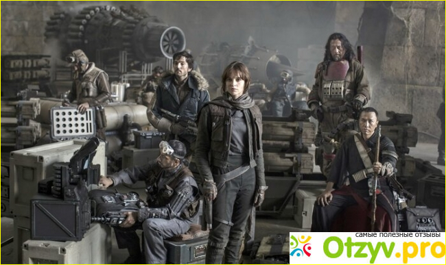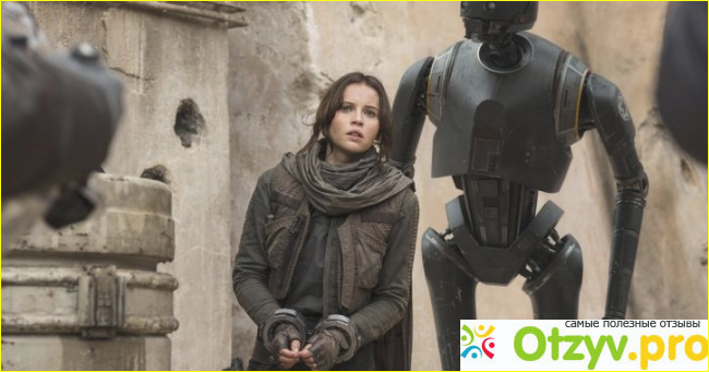 Вот многие блогеры говорят, что, мол, персонажи не прописаны и не запоминаются. Я согласен, в какой-то мере, действительно всех главных героев людей трудно запомнить, но это, потому что они здесь впервые, появись они в других фильмах, они бы стали культовыми. Но они интересные: эта девчонка главная героиня, похожая на Китнис Эвердин, которая в отличи от Рем храбрая, боевая и отважная; этот пулемётчик; самое светлое пятно — смешной дроид; и каюсь, не помню имя пилота — повстанца, но он тоже блеснул. В общем, может персонажи и не запомнятся, но для одного фильма они весьма интересные. Порадовали и злодеи: прежде всего это харизматичный генерал Киник, такой обаятельный злодей; губернатор Таркин, вылитый как в четвёртом эпизоде; и конечно же он, тот кого я ждал весь фильм — Дарт Вейдер, он шикарен, он тут появляется пару раз, но это стоящие пару раз, которые умело создают атмосферу интриги и таинственности вокруг него и повторюсь он здесь крут.