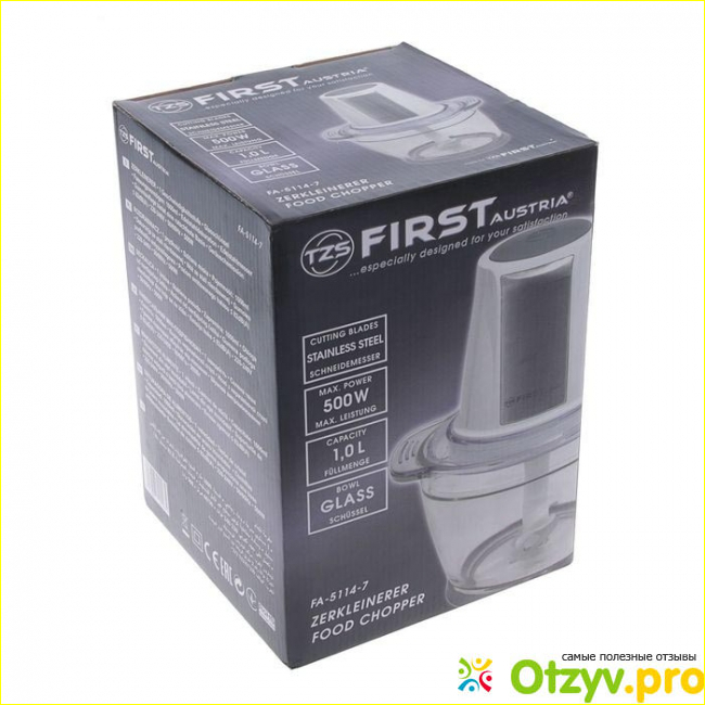 Учитывая то, что готовить нужно не очень много, но ежедневно, я выбрала модель с объёмом чаши 1 литр, и потом не скоростную. Прибор работает от стандартной электрической сети 220 вольт. Честно говоря, бренд first мне не нравился, поскольку я периодически сталкивалась с этой продукцией, и о ней у меня сложилось не самое лучшее впечатление. Было 2 магнитофона от этого firstа, которые благополучно сломались через пару месяцев, были электрочайники, и ещё некоторая ходовая продукция. Взяла этого производителя только потому, что была проблема с деньгами и не было возможности купить более серьезное техническое устройство.