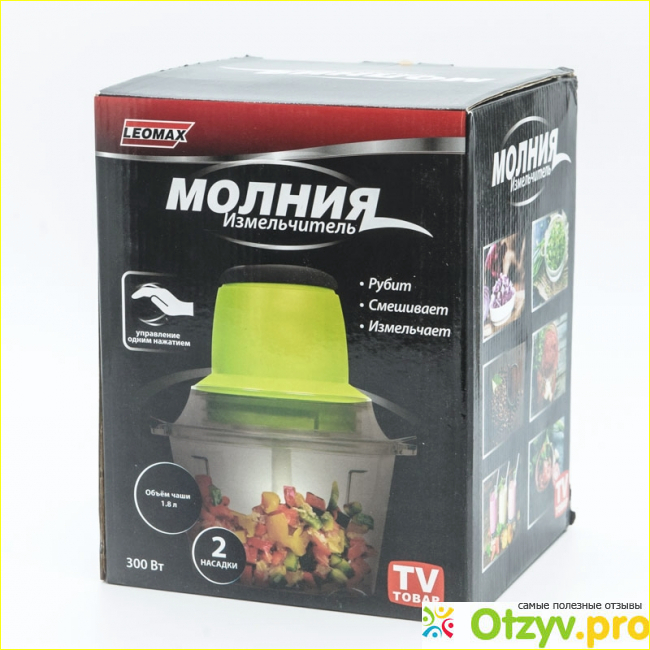 Качество низкое, неспособное работать в том режиме, чтобы получалось красиво нарезано и ровно измельчено! В то время, когда мясорубка, которой пользовались еще мои родители, пришла в негодность, встал вопрос, какой же прибор купить. И думали, что нам крупно повезло, когда случайно нарвались на рекламу Измельчителя от Леомакса. Мол, 6 приборов способен заменить. И как мясорубка, и как шейкер. и миксер, и овощерезка, в общем, расписан был благородно, я и повелась.