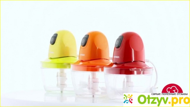 Если же вы измельчаете что-то время от времени, то можете смело рассматривать такую модель. Она компактная по размерам, простая в уходе и ей всегда найдется место на кухне. Причем сам измельчитель представлен в нескольких цветах. А все расцветки у такой модели очень яркие и позитивные. Когда видишь прибор в таком ярком цвете, то сразу же поднимается настроение.
