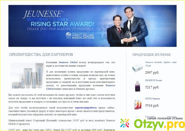 Jeunesse Global это совсем юная компания но, в тоже время которая очень быстро развивает своё присутствие на рынке интернет-торговли, особенно в его сетевой сфере. В нашу страну она пришла первого августа 2014 г. У неё в активе имеются инновационные продукты, которые не имеют аналогов во всём мире, множество запатентованных технологий, не которые из которых удостоены Нобелевской премии, в компанию входят многие известные доктора медицинских наук имеющие мировую известность.