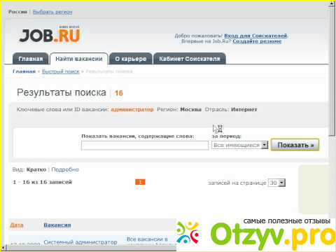 Здравствуйте! Хочу высказать свое мнение о сайте Job.ru. Положительные и отрицательные стороны веб-ресурса.