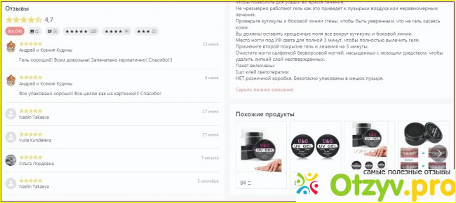 Тут довольно подробное описание, причем в левой части экрана можно увидеть отзывы и оценки в звездочках других пользователей, которые уже приобрели эту вещь.