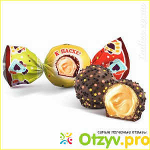 Развернув фантик, я увидела конфетку, которая покрыта шоколадом, а поверху посыпана такими же цветными штучками, как обычно посыпают пасхальные куличи - от того и название такое, ведать.