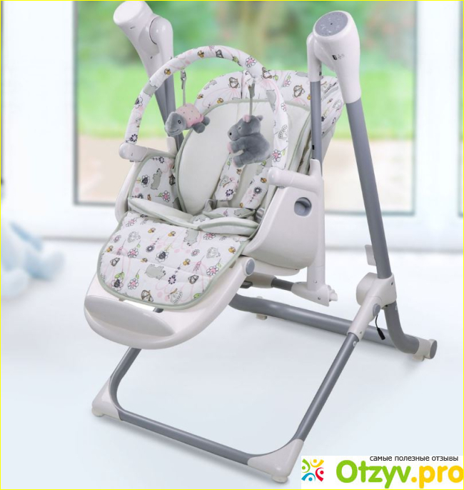 Качели оснащены музыкальной панелью с пятью различными мелодиями и возможностью регулирования громкости звука. Также имеется функция вибрации, которая помогает убаюкать малыша. К плюсам стоит отнести и пяти-точечные ремни безопасности, которые надежно фиксируют ребенка и предотвращают случайное выпадение.