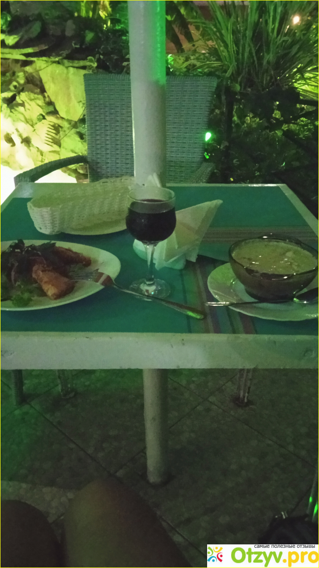 В октябре отдыхала в Абхазии, в старой гагре. Где поесть приходилось долго искать, поискав в интернете отзывы о кафе и столовых, решила посетить кафе,, Араукария,, отзывы конечно были противоречивые, и ужасные и положительные. Посмотрев меню, цены меня приятно удивили, заказала салат,, старая Гагра,, очень красивая подача и курицу по английски.