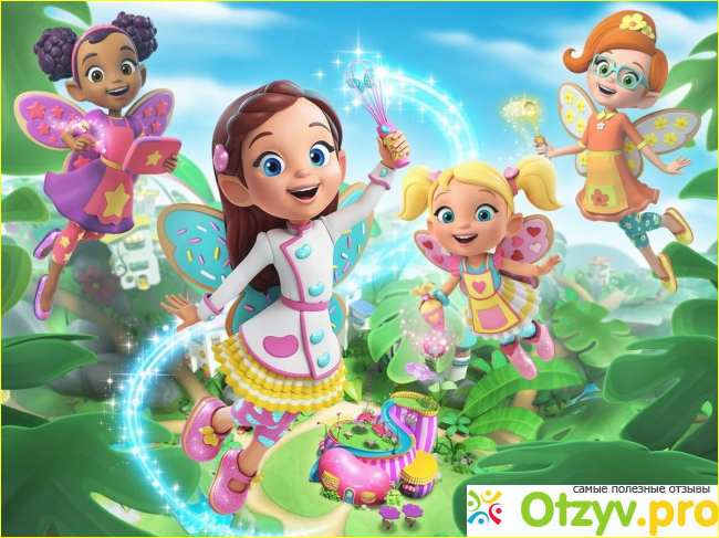 Все это продолжалось пока фея Баттербин и ее друзья: Дэззл, Поппи, Крикет и Джаспер не открыли свою пекарню. Мультик подходит и детям и взрослым, графика хорошая как и музыка. На плохую хозяйку работают Спорк и Спэч две обезьяны, которые и будут пакостить феям. У каждой феи в кафе Баттербин есть свои таланты. Крикет хоть и младшая сестра Баттербин, но и она помогает. В Волшебной шкатулке феи находят волшебный венчик, он дарит феям особенные крылья и предметы. Джаспер обычный мальчик, его феи приглашают стать доставщиком. Венчик дарит ему крылья. Вредная хозяйка ужасного кафе даже волшебный венчик попытается украсть, чтобы ее продукция была лучше. Клиентами в мультике будут лесные зверушки, вообще этот городок находится в лесу. В кафе Баттербин готовят их свежих продуктов, тогда как вредная хозяйка плохого кафе готовит с мармелада все свои товары. Даже ее обезьяны не хотят есть эту стряпню. Готовит не по рецептам, а как попало скидывает, а потом продает.