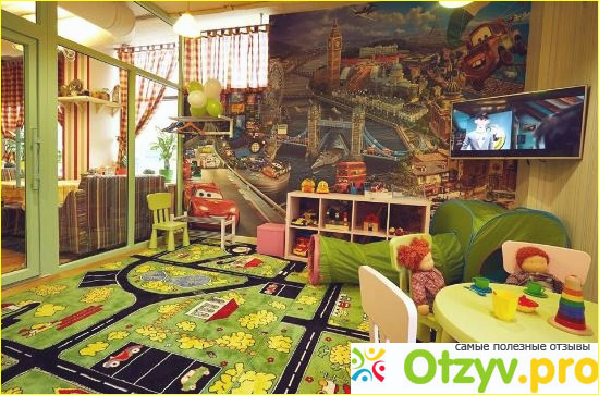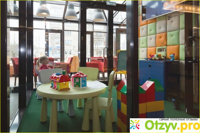 Кафе расположено в центре игровых площадок, так взрослые могут легко следить за малышами.