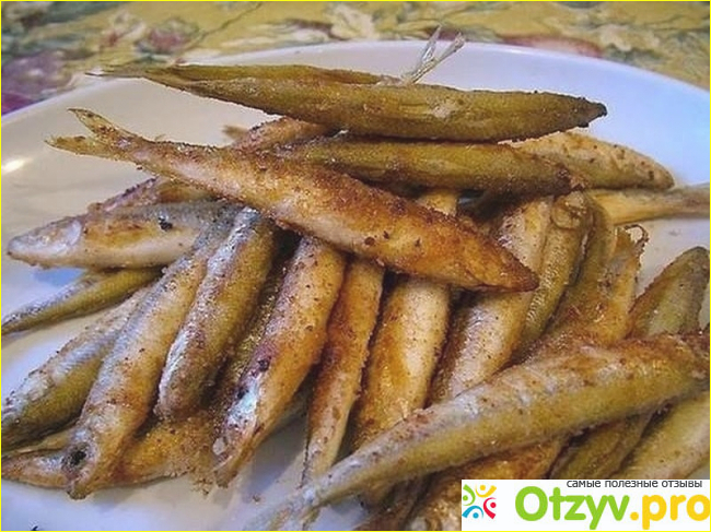 Нужно ее хорошо промыть, посолить, обвалять в муке. Сковороду с растительным маслом нужно хорошо прогреть, только потом отправляем мойву для жарки. Рыбки на сковородке не должны соприкасаться друг с другом. Иначе мойва при жарке будет разваливаться. Рыба вкусная. Недостаток в том, что при жарке она выделяет довольно резкий запах. И выветривается он очень медленно. Иногда больше суток пахнет на кухне.