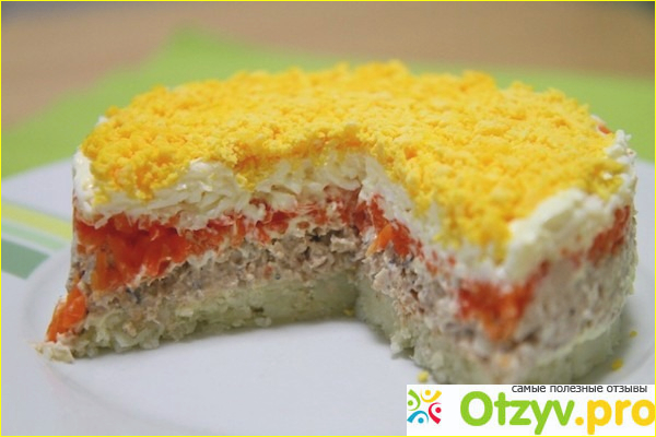 4 слой: натираем на крупной терке морковь. Выкладываем в салатник следующим слоем.