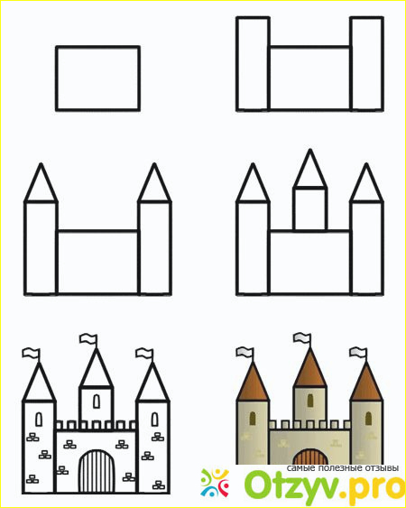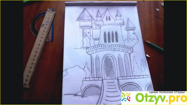 Мы выбрали мастер-класс и носит он название "Я настоящий художник". Тут же записались прямо на сайте и наша дочка ходила на все 32 урока, предоставленно прогрммы. Вот здесь-то она научилась рисовать замок. Его на нарисовала простым карандашом и сперва намечала общие начертания. было похоже на торт с кубиками. Верхушки башен изобразила она ввиде треугольников, затем приступила к рельефу и взялась за окошки и ворота, выделила стену из кирпичей. Можно добавить теней и вот замок готов.