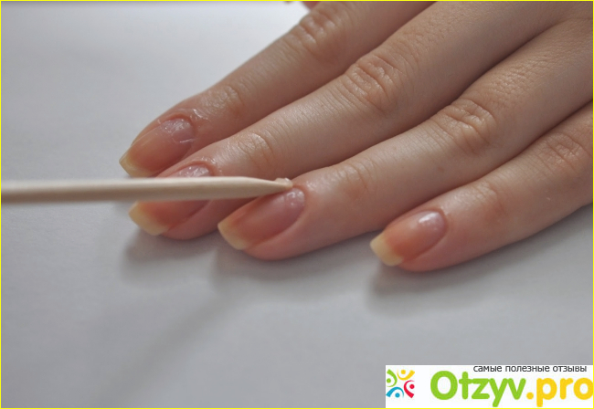 Это нужно для того, чтобы хотя бы раз в неделю была возможность самостоятельно провести сеанс, не прибегая к услугам мастера. Так как на деле все очень просто. Для манипуляции понадобится средство для размягчения кутикулы или ремувер. Достаточно нанести его по боковым валикам и кутикуле, подождать ровно столько, сколько предполагает инструкция и зачистить всю отросшую кожицу деревянной палочкой, используя более тупой край. От чистоты зависит насколько в дальнейшем хорошо будет держаться лак и красота покрытия в целом.