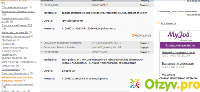 На ресурсе нет никаких сведений, от соискателей, которые трудоустроились по одному из этих объявлений. В моей жизни, было много компаний, в которых я работала, и мне есть о чём рассказать, но к сожалению, когда я пыталась написать отзыв о работодателе, модераторы его отклоняли, но это особенности только нашего региона, в котором всё тщательно скрывается, и никто не заинтересован размещать информацию, в котором в открытую будет сказано обо всех нарушениях Трудового Законодательства, задержек по выплате заработной платы, неадекватном поведении работодателей и т. д, хотя эти сведения, нужны всем, кто трудоустраивается в ту, или иную организацию.
